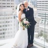 This dress is actually a two part dress. The skirt comes off, and it becomes a sheath dress that is light and easy to dance in. The sleeves are beautifully beaded and flowy. The neckline is high, but sheer so you're not too covered. I will also add in the veil that matches the skirt.